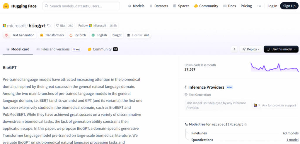 The BioGPT AI model is a generative transformer from Microsoft Research trained primarily on PubMed abstracts. It specializes in biomedical language generation for tasks like Q&A, summarization, and synonym expansion. Its domain fluency is strong, but as a generative model it can hallucinate, especially outside PubMed-like contexts or when asked for specific trial citations.
