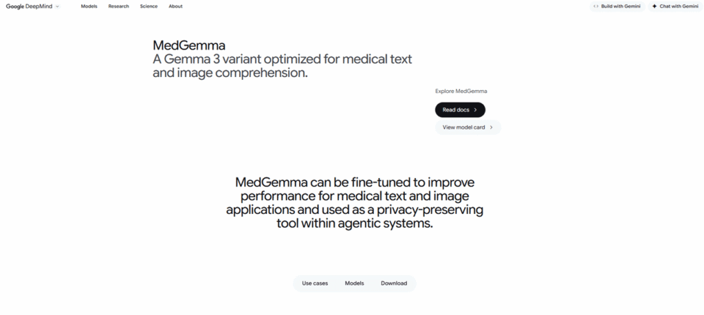 MedGemma’s SigLIP encoder is pre-trained on de-identified medical images: after fine-tuning it reached state-of-the-art RadGraph F1 30.3 for CXR report generation. It can integrate with agentic tools (FHIR generators, web search, Gemini Live) for end-to-end workflows. Caveat: early testers reported misses, e.g., a normal CXR read on a confirmed TB case, so it’s not clinical-grade out of the box. Always validate locally, add uncertainty estimation, and require radiologist sign-off. Sources: Google Research, GitHub notes, InfoQ.