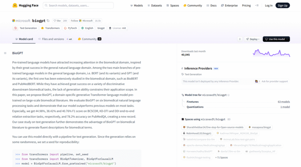 - BioGPT: PubMedQA 81.0% (Large): best for research text generation.